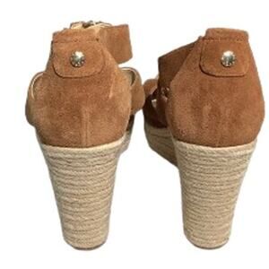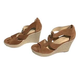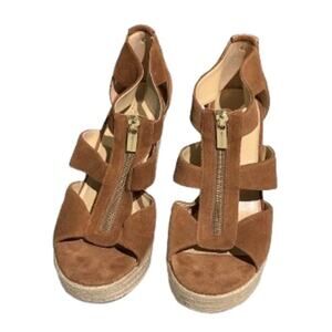 Michael Kors Damita Espadrille Wedge Sandals 9.5M – Suede, Zip Front, Summer