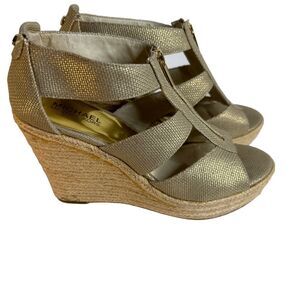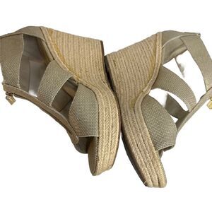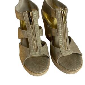 🌞Michael Kors Damita Tan Sand Canvas Zip Wedge Espadrille Platform Sandal Sz 8.5
