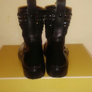 Jet black rain boots with rubber soles. Boots are Brand new and have black and silver studs. I have original box.These are $87 or best offer. Please comment below or use the offer Button!!