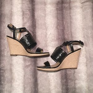 NWT!!! MICHAEL Michael Kors Darci Wedge in Brown are stunningly chic. These adorable Wedges features Vachetta leather upper with detailed cutouts, adjustable buckle closure, and single strap adorns open toe silhouette. Has braided jute rope wrapped wedge heel with approx 3/4" platform 3-3/4" jute-wrapped heel, and rubber sole. These wedges embody a chic, casual woman with a busy and trendy lifestyle. Pics 4-5 is size 6.5 and pics 6-7 is size 8 (boxes not included)