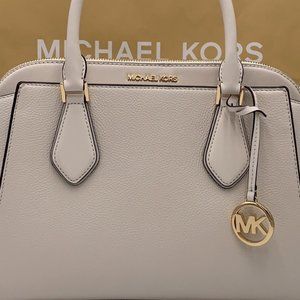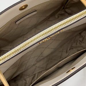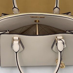 Michael Kors Daria Large Satchel Bag Leather Light Cream