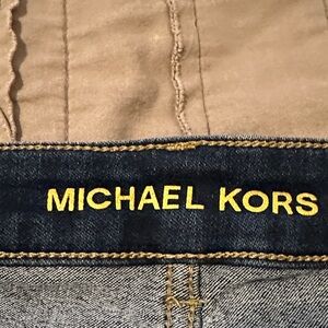 Chic jeans by Michael Kors. Features a sleek dark blue color. Stylish button details add flair.