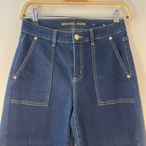 Chic dark jeans by Michael Kors. Stylish wide-leg design. Perfect for versatile wear.