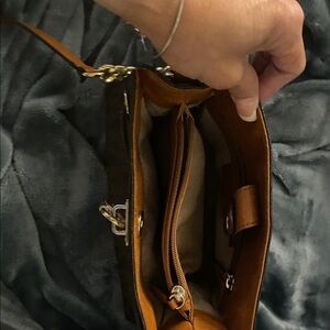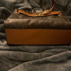 Elegant crossbody with signature MK monogram. Features gold-tone lock and adjustable strap.