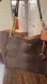 Elegant dark brown tote with signature MK pattern. Features gold chain accents. Ideal for daily use.