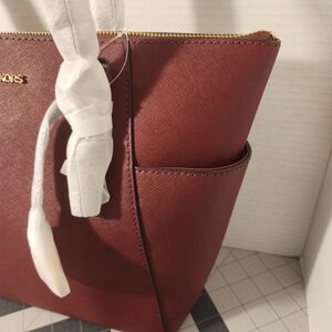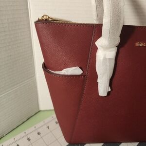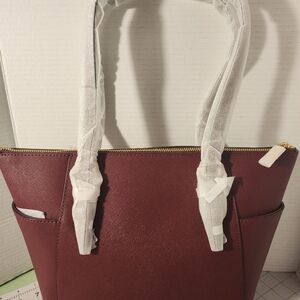 Elegant and stylish, this Michael Kors tote bag in rich dark cherry is perfect for any occasion. Crafted with attention to detail, it offers both functional items and beautiful accents. Michael Kors Charlotte Large Top Zip Shoulder Tote Bag Dark Cherry (NWT)
