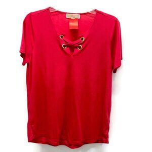 Michael by Michael Kors dark pink w/gold grommets jersey short sleeve t-shirt, Size L