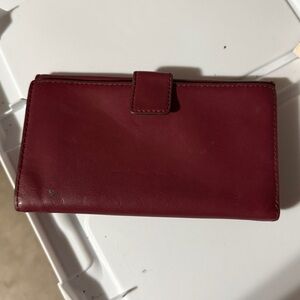 Elegant dark red wallet featuring bold MK logo. Ideal for daily essentials.