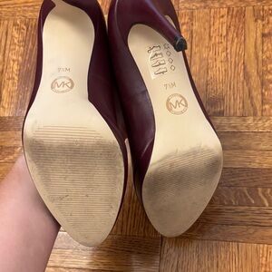 Chic dark red heels by Michael Kors. Sleek design for versatile wear. Heel height approx 4.25”. Worn a few times.
