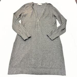 Michael Kors Deep V-Neck Zipper Adjustable Gray Knee Length Dress Size M