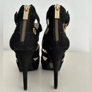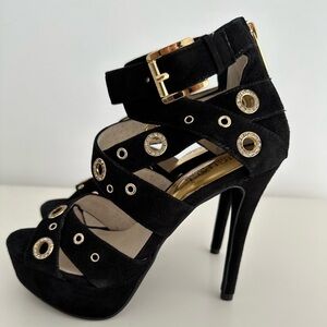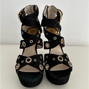 Michael Kors Delilah Grommet Platform suede ankle strap heels size 5 1/2 black