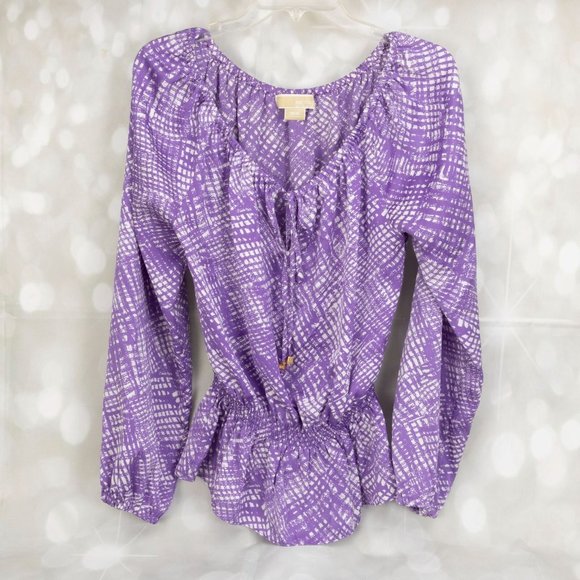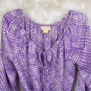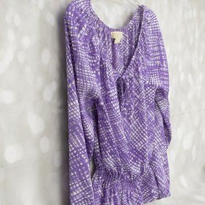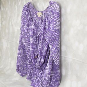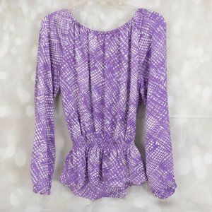 Michael Kors Designer Purple/White Long Sleeve Blouse Top W/Elastic Waist