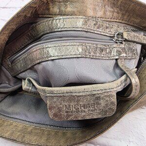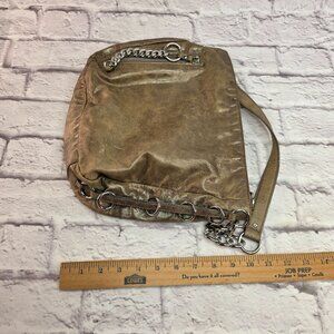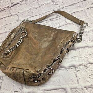 Michael Kors Designer Shoulder Bag Metallic Taupe Leather w/ Chain Accent