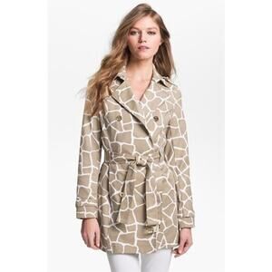 Michael Kors Double Breasted Trench Coat Tan White Mid Length Safari Animal Med