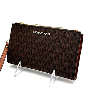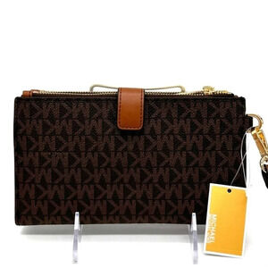 Michael Kors Double Zip Wallet Wristlet Brown Leather (NWT)
