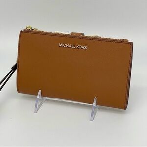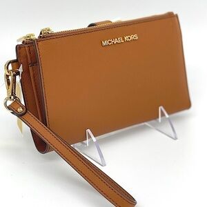 Michael Kors Double Zip Wallet Wristlet Luggage Brown