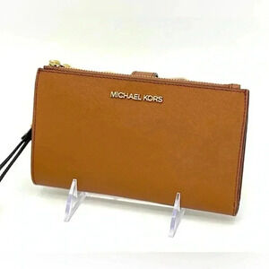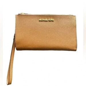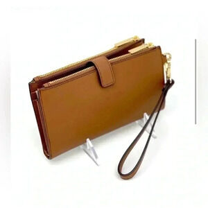 Michael Kors Double Zip Wallet Wristlet Luggage Brown
