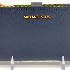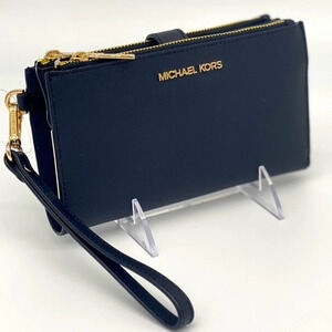 Michael Kors Double Zip Wallet Wristlet Navy Blue