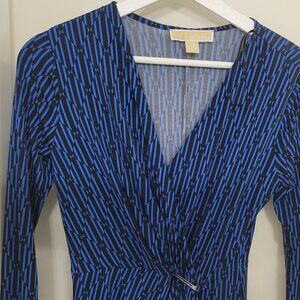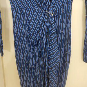 Size XS; asymmetrical dress, Blue and Black geometric print