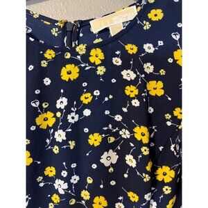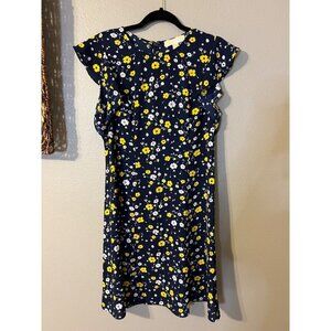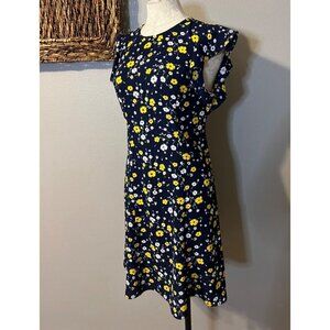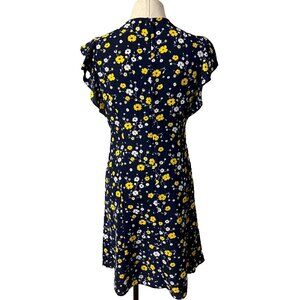 Michael Kors Dress M Medium Blue Yellow Short Flutter Sleeve Stretch NEW