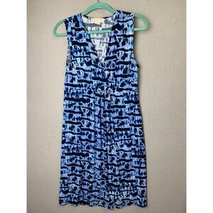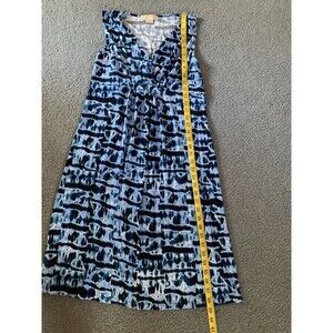 Michael Kors Dress Medium Blue Sleeveless V Neck Ruched Geometric Tie Dye Style