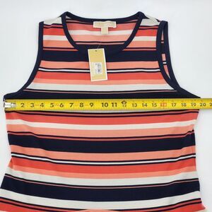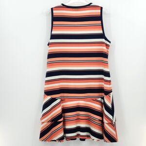 Michael Kors Striped Comfy Flounce Ruffle Tank Dress Womens Size XL Coral Pink Blue Multicolor Drop Waist Travel Vacation Summer Prep