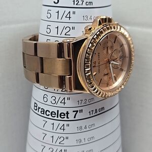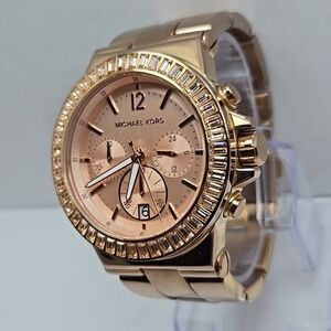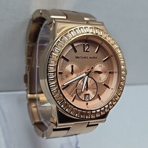 Michael Kors Dylan Rose Gold Chronograph Date Watch Baguette MK New Battery