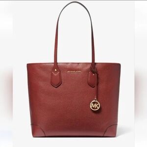 Michael Kors EVA Large Pebbled Leather Tote Purse Brandy Red NWT