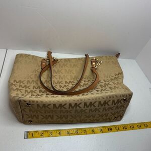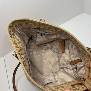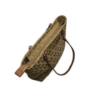 Michael Kors EW Gold Signature Canvas Leather Chain Shoulder Bag Purse Designer
