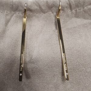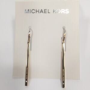Michael Kors Earrings Gold Tone MK Logo Bar Drop Dangles MKJ4671710 NWT