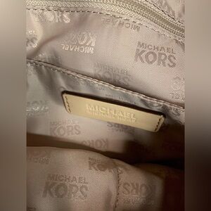 Measuring 14 inches in width and 10 inches in height, this medium-sized tote is perfect for carrying all your essentials. The interior lining is also beige, with enough space to store your daily items. The tote has a sleek and sophisticated style, perfect for any occasion. Get ready to turn heads with this stunning Michael Kors shoulder tote purse.