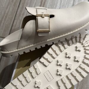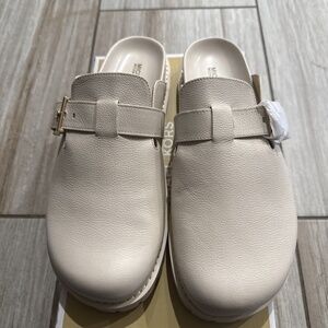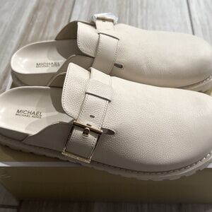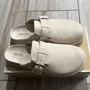 Michael Kors Easton Flat Leather Clog Light Cream Size 10