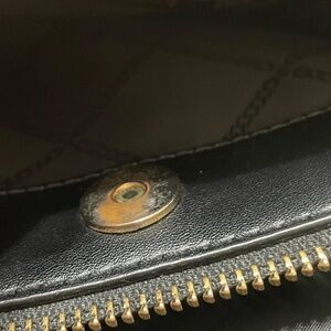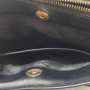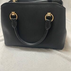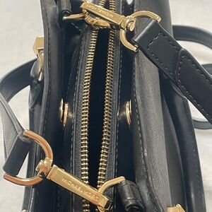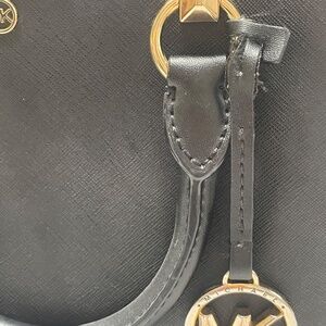 Michael Kors Edith Saffiano Satchel Handbag, Crossbody Black Pre-Owned. This Michael Kors back has been lightly used and shows some signs of use ( the metal feet are lightly scuffed and the interior snaps have some color fade, the hanging tag has some scuff and frays). Over all this bag is in very nice condition.