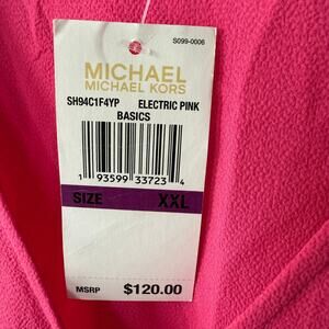 Brighten up your wardrobe with this vibrant Michael Kors electric pink studded sleeves top! This stylish crossover top features a flattering elastic waist and comes in size 2X, which fits like an XXL. Perfect for adding a pop of color to any outfit. Don't miss out on this eye-catching piece!