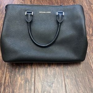 Stylish black shoulder bag with gold-tone hardware. Perfect for any occasion.
