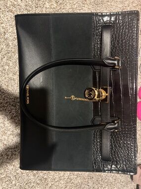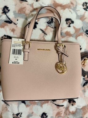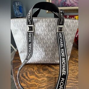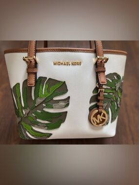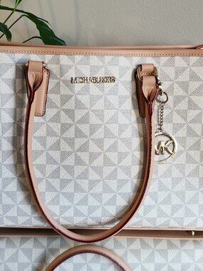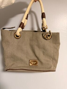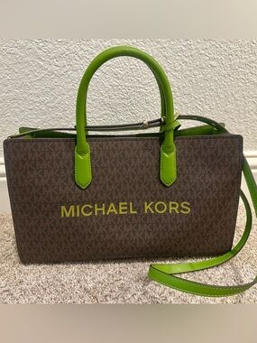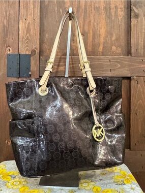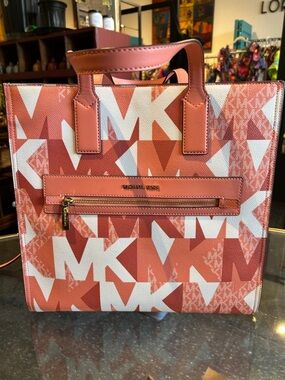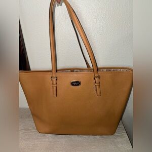 Sophisticated Michael Kors tote in a luxurious gold shade. Perfect for adding a touch of elegance to any outfit. Features sturdy handles and a sleek design.