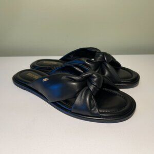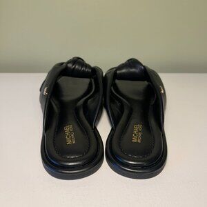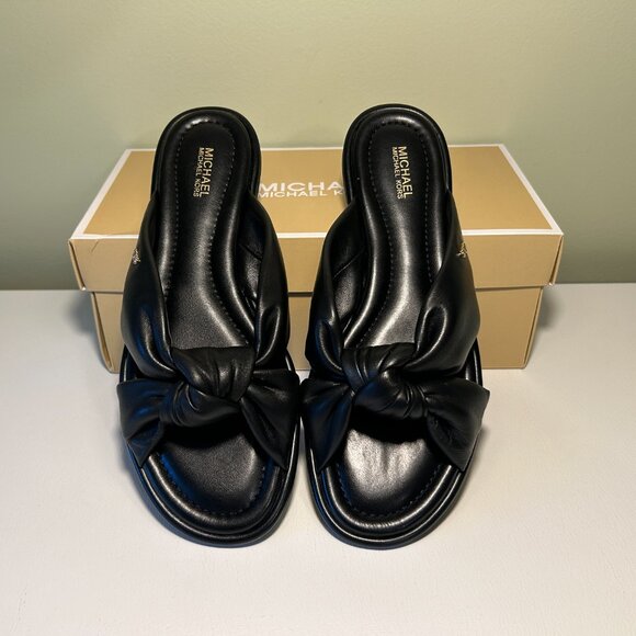 Brand: Michael Kors Size: 9.5M Color: Black Condition: NWT **Comes with Michael Kors box and factory packaging** Slip into the Elena slide sandal for an effortless off-duty look. A feminine and modern take on the classic slide, this pair features a knotted frontal detail and is made from luxe, pillowy leather for an elevated finish. • 100% leather from tanneries meeting the highest standards of environmental performance • Slide sandal • Leather • 100% leather • Sole: rubber • Open toe • Slip on • Imported • Style # 40S4ELFS1L