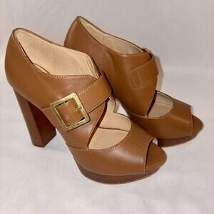 Michael Kors Eleni Block Heels Platform Peep Toe Brown Leather Women’s Size 6M
