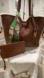 Michael Kors Eliza Brown Leather Shearling Tote Wristlet Set