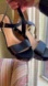 Chic navy leather straps with a stylish tan woven wedge platform and studded trim. Perfect blend of elegance and comfort. Excellent condition, only used once.