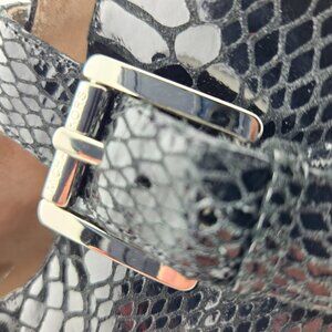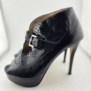 Michael Kors Embossed Leather Buckled Peep Toe Platform Booties – Size 8.5M