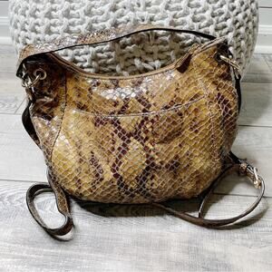 Michael Kors Embossed Python Patent Leather Hobo Satchel Crossbody Bag Brown