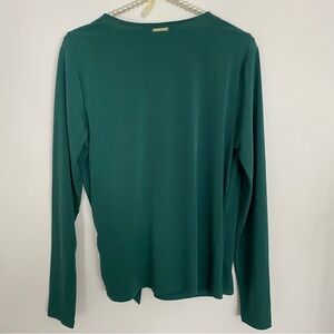 Michael Kors Emerald Green Long Sleeve Wrap Top With Gold Buckle