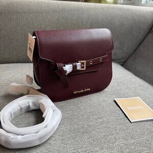 Michael Kors Emilia Small Saddle Crossbody Bag Oxblood Burgundy New