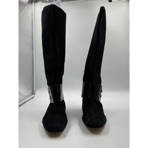 Michael Kors Emily Black Suede Leather Riding Boots with Patent Accent — Size 6.5