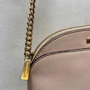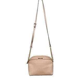 Michael Kors Emmy Medium Dome Crossbody Pink Saffiano Leather Gold Chain Strap