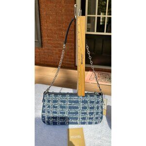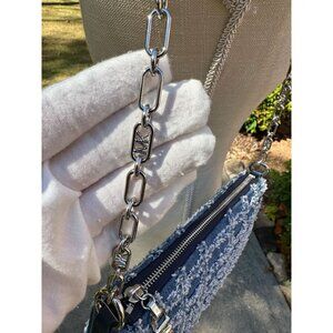Michael Kors Empire Medium Frayed Blue Denim Chain-Link Pouchette 32S4S8EW6C
