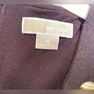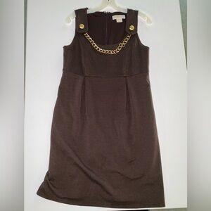 Excellent Condition Luxury Designer Brand Michael Kors Empire Waist Shift Knit Dress with Chain Detail. Super soft poly-nylon blend, has some stretch. Comes from a pet-free, smoke-free, climate controlled environment.