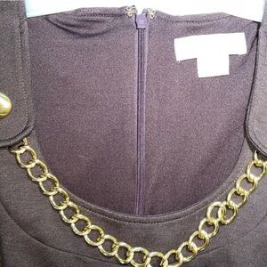 Michael Kors Empire Waist Chain Detail Shift Knit Dress Chocolate Luxury Design