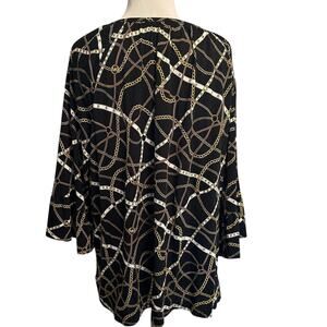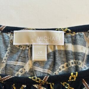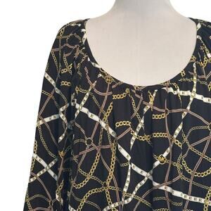 Michael Kors Equestrian Chain Print Top Womens Size 2X Bell Sleeve Shows
